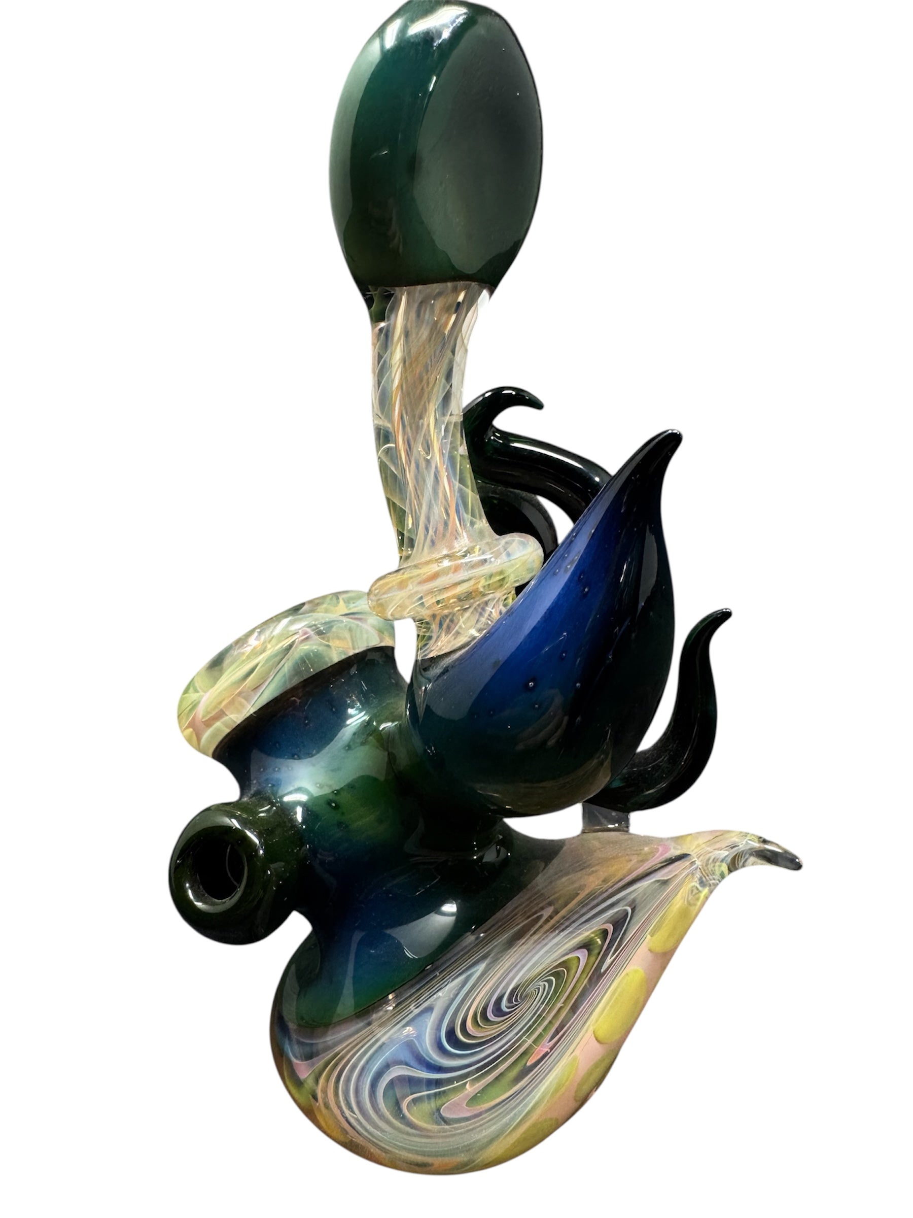 American made pipe by gasp and gateson beautiful fume work and green and blue color contrast with a flat mouthpiece